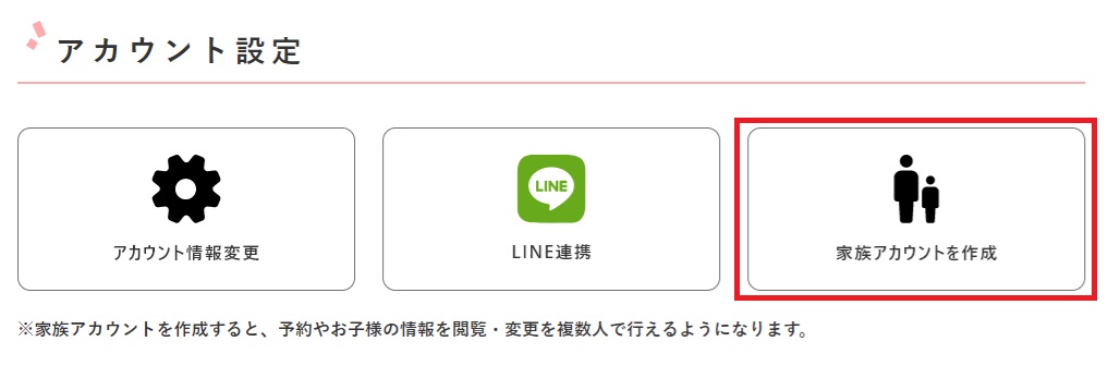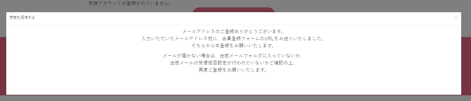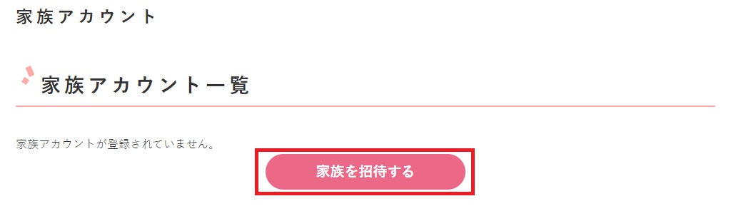 家族アカウント一覧ページの[家族を招待する]をタップする。