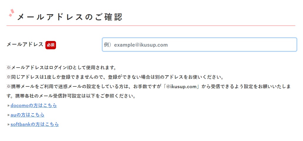 会員登録にて使用するEメールアドレスを入力します。