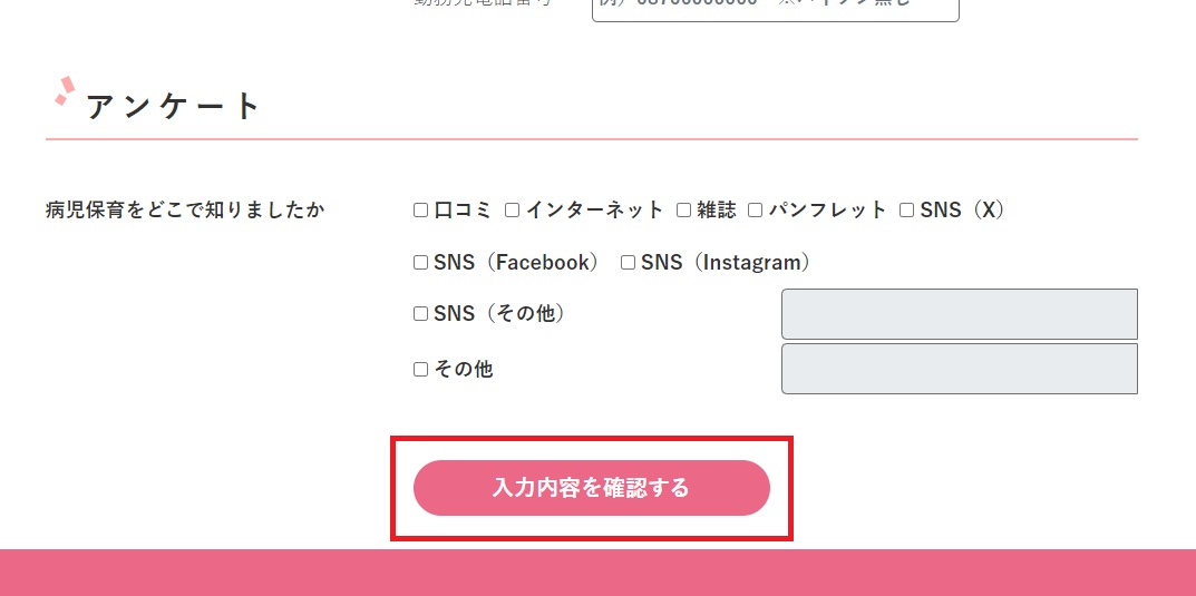 必要事項を入力し、[入力内容を確認する]をタップします。