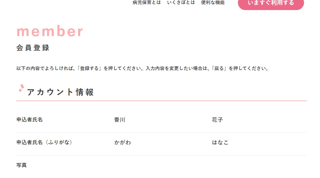 入力内容の確認後、[登録する]をタップします。