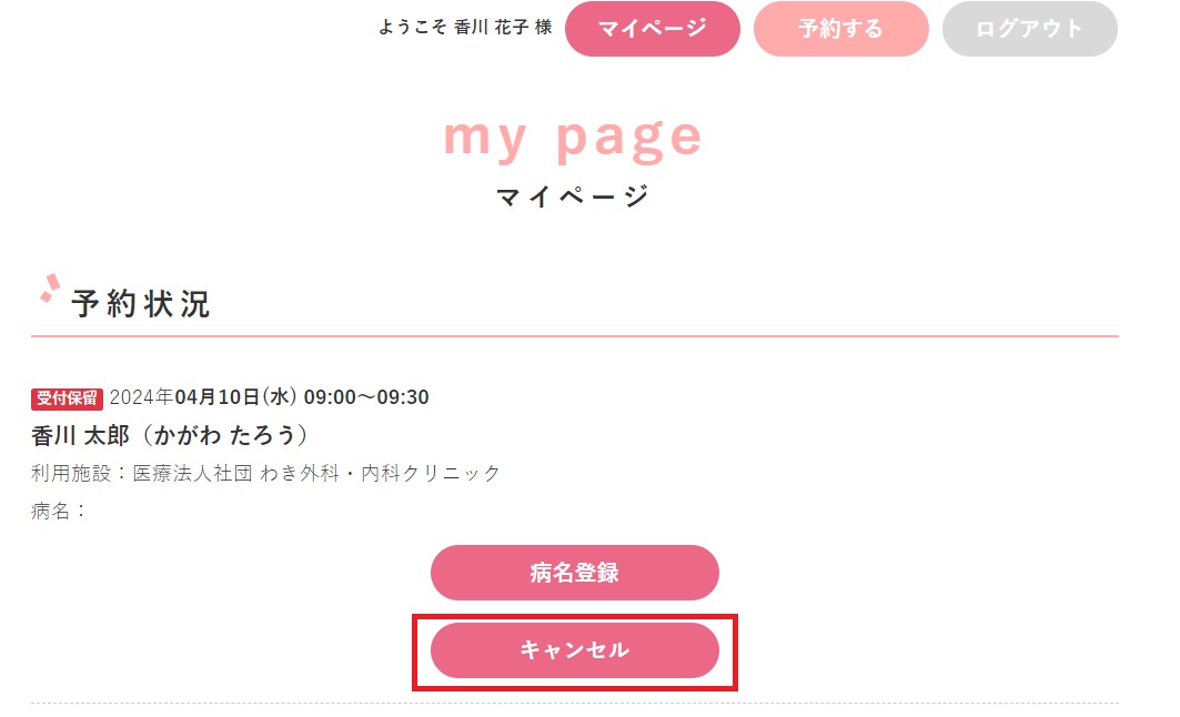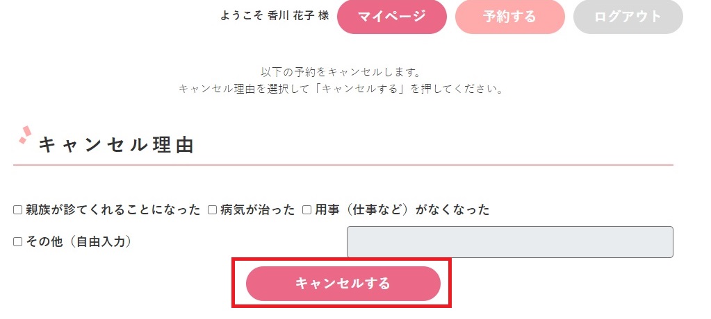 マイページから取り消したい予約の[キャンセル]をタップします。